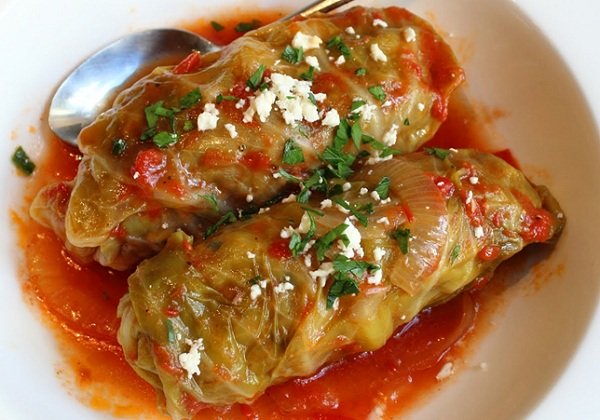 محشي الملفوف باللحم المفروم طبق لفائف الملفوف بخليط اللحم المفروم مع حبات الرمان الحامضة، من دون استخدام الأرز، ويطهى الطبق بعصير الطماطم الطازج أو المجفف ليعطي الطبق الطعم اللذيذ والمتوازن مع كل المكونات