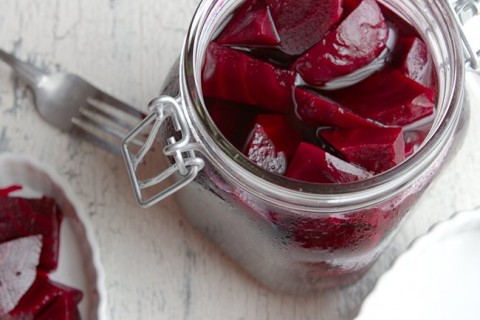 1. يغسل البنجر ويسلق فى كمية ماء مناسبة مع معلقة من الملح.