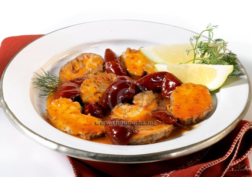 - للإفادة : الفلفل “نيورة” يباع في محلات التوابل ويتميز بمذاقه المدخن، يمكن تعويضه في الوصفة بالفلفل الأحمر المشوي، المقشر والمقطع شرائح.