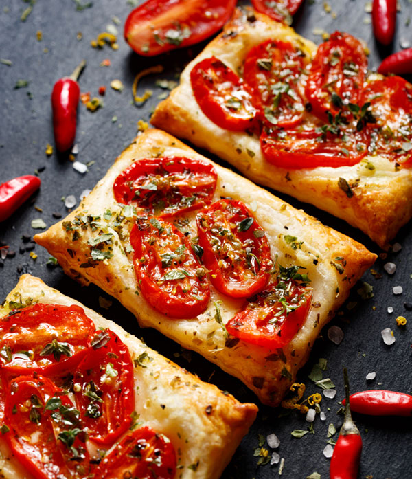 مربعات البف باستيري بالبندورة والفلفل .. هش وطيب