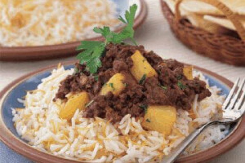 - يُحمّى الزيت في قدر كبيرة، ويُطهى فيه البصل لمدة تتراوح بين 4 و6 دقائق أو حتى يكتسب لوناً ذهبياً. يُضاف اللحم المفروم والثوم ويُطهى المزيج لمدة تتراوح بين 6 و8 دقائق أو حتى يكتسب لوناً ذهبياً.