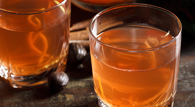 يُخلط‭ ‬عصير‭ ‬التفاح‭ ‬وعصير‭ ‬الأناناس‭ ‬وعصير‭ ‬التوت‭ ‬وقشر‭ ‬الليمون‭ ‬وعود‭ ‬القرفة‭ ‬وجوزة‭ ‬الطيب‭ ‬معًا‭ ‬في‭ ‬قدر‭ ‬كبير‭ ‬الحجم‭. ‬يُترك‭ ‬الخليط‭ ‬حتى‭ ‬يغلي‭. ‬تُخفض‭ ‬درجة‭ ‬حرارة‭ ‬النار‭ ‬ويُطهى‭ ‬الخليط‭ ‬لمدة‭ ‬10‭ ‬دقائق‭. ‬يُصفى‭ ‬ويُقدم‭ ‬دافئًا‭.‬