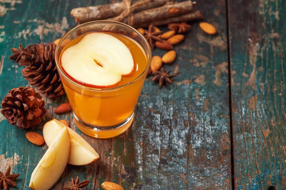 - يوضع العصير في وعاء، ويضاف إليه عيدان القرفة.