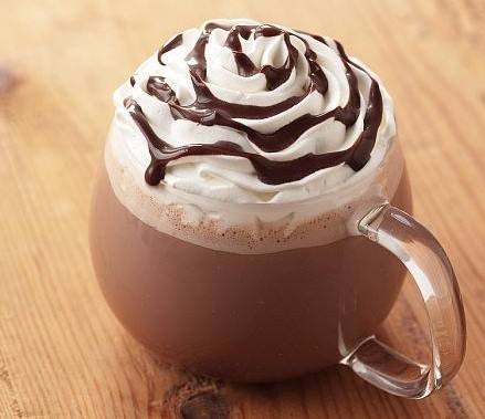 - يسكب المشروب في أكواب التقديم ويزين بالكريمة المخفوقة والشيكولاتة الذائبة.