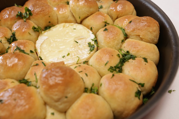 11. ادهني المعجنات بالزبدة المذابة، ورشي البقدونس المفروم للتزين.