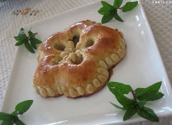 - ممكن نزين بحبات اللوز المقشر ندهن العجينة بالبيض ونتركها تتخمر مره ثانية