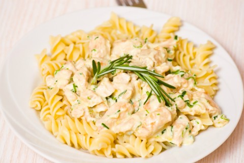 - يعني أنه قد حان وقت إضافة الباستا المسلوقة، حيث سنقوم بتحريكها قليلاً مع صلصة الدجاج والثوم المشوي إلى أن يسخن المزيج بالكامل ويصبح طبقنا جاهزاً للتقديم.