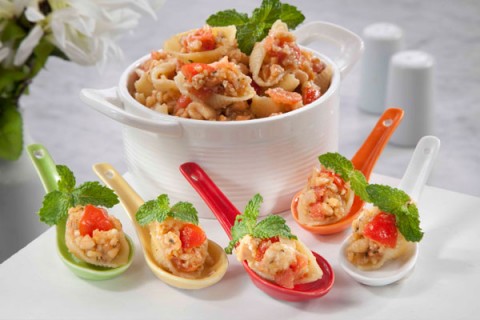 Home وصفاتمعكرونة بصلصة اللوز والريحان