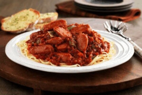 - توضع النقانق بهدوء في صلصة الطماطم وتُحرّك على نار هادئة لمدّة 10 دقائق.