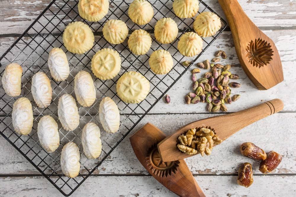 - تحشى بالتمر، ويغلق العجين عليها، وتنقش بالقالب الخاص بالمعمول او الكحك.