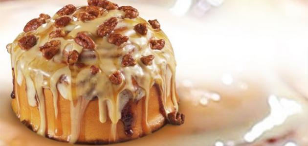 - سكب خليط السكر البودرة فوق لفائف القرفة.