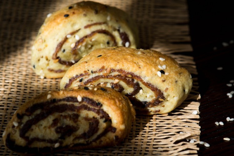 3. لتشكيل المقروطة: تفرد العجينة على شكل دائرة وفوقها يفرد التمر أيضاً بالشكل الدائري، وتلف ويرش السمسم وتقطع. وتخبز بالفرن لمده 20 دقيقة على درجة حرارة 180. ثم تزين برش بالسكر البودرة وتقدم.