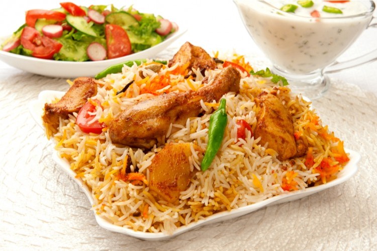 10.  ضعي الأرز والدجاج في طبق التقديم ورشيه بالقليل من ماء الورد وقدميه.