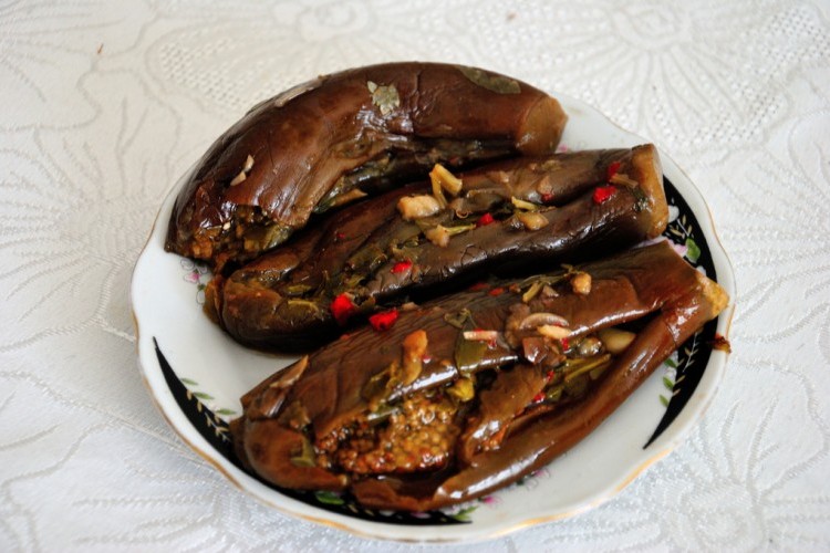 - صفي الباذنجان جيداً واعصريه ثم اصنعي شق صغير بواسطة سكين حادة في وسطه لوضع الحشوة.