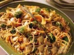 - تقلب المكرونة مع الدجاج ، الزبد، عصير الليمون، البقدونس، ومسحوق الثوم