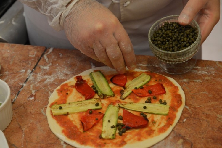3 توضع “التاغلياتيل” في طبق التقديم، تعلوها الخضر المسلوقة، والى جانبها الجبن الرومي و”التوست” المحمّر.