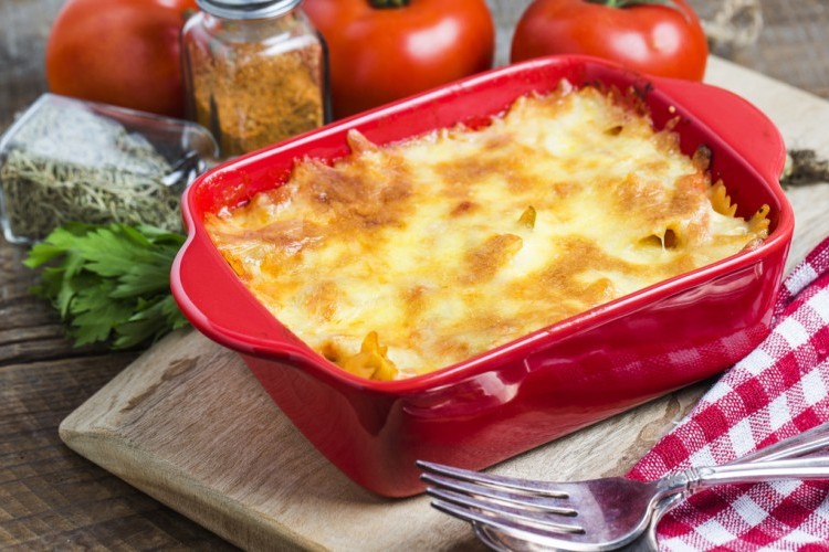 13. أدخلي الطبق للفرن على حرارة 400 درجة لمدة 45 دقيقة حتى يذوب الجبن ويتحمر.