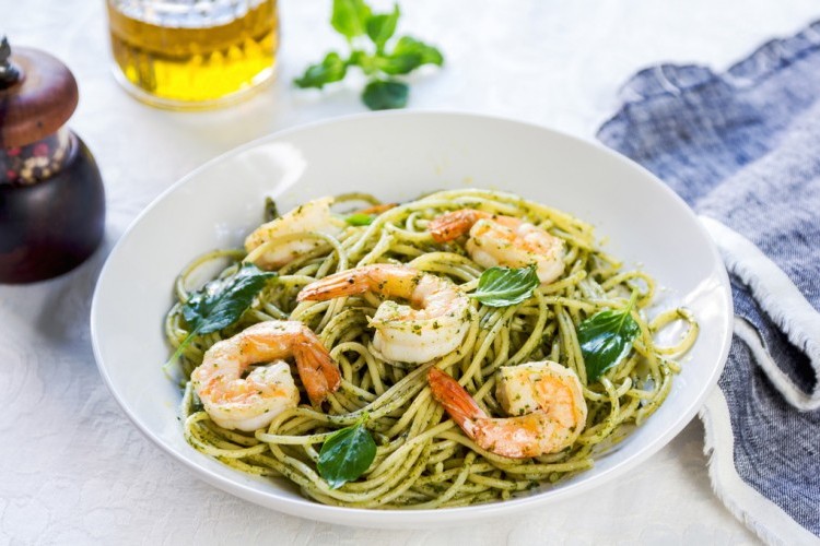 6. اسكبي المكرونة في أطباق ووزعي الصوص والروبيان وقدميها ساخنة.