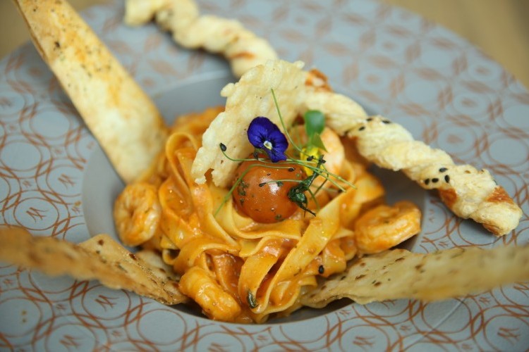 5. قومي بغلي الفيتوتشيني إلى درجة الدنتي ثم أخرجيها من الماء وضعيها في المقلاة مع صلصة الروبيان ثم اطهي الباستا في نفس المقلاة.