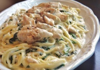 مكرونة بالسبانخ والدجاج