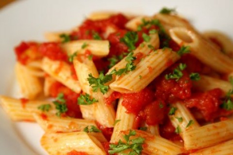 - تصفى المكرونة ويضاف عليها الصلصة ونقلب جيداً ونضيف على الطبق جبنة بارميزان المبشورة، وتقدم.