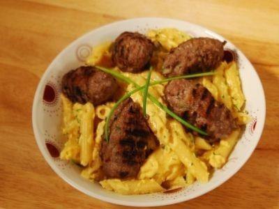 - تضاف الكفتة إلى المكرونة في طبق التقديم، ثم يزين الطبق بإضافة بعض من أوراق البصل، ويصبح الطبق جاهز للتقديم