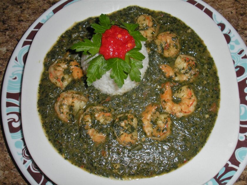 ملوخية خضراء بالكزبرة والجمبرى