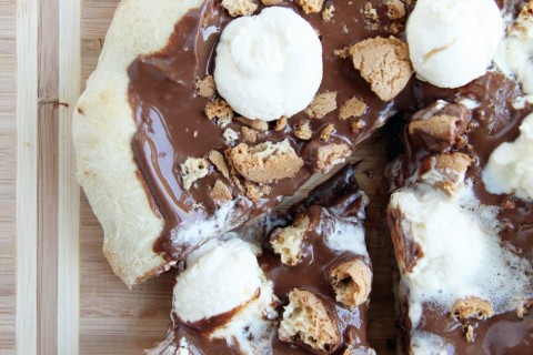 - بعد ان تنضج يدهن الوجه بالنوتيلا ثم تقدم.