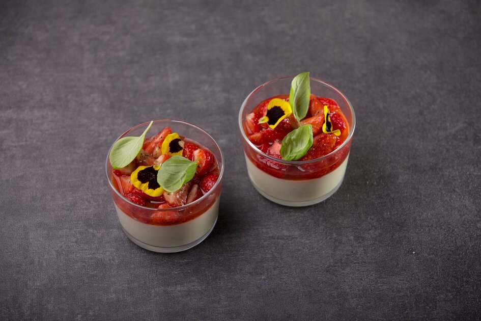 تجمع الفراولة والسكر والملح والفلفل وماء الورد في وعاء وتقلّب المكونات حتى تدمج، تترك جانباً لمدة 30 دقيقة على الأقل في الثلاجة حتى وقت التقديم.