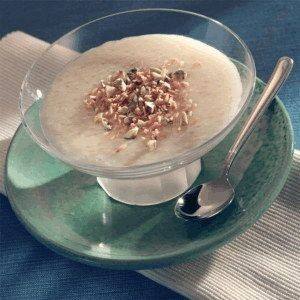 - قبل التقديم ، يزين الطبق بشرائح الموز أو المانجو ، والقشطة ، واللوز والصنوبر المقلي والفستق الحلبي المطحون .