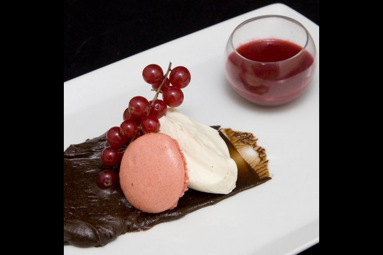 4- يسكب الخليطان في طبق التقديم حسب الرغبة، ويزيّن بالفاكهة البرية.
