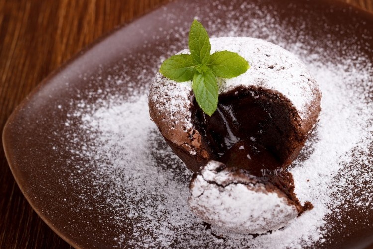 7. حددي أطراف المولتن كيك بالسكين في القوالب ثم اقلبيه على طبق التقديم.