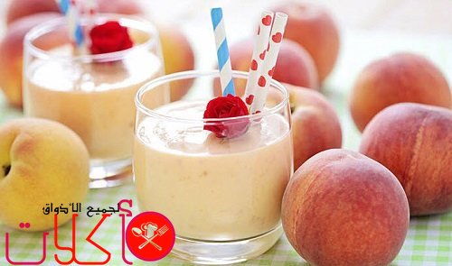 ميلك شيك بالقشطه شراب مغذي، بارد، لذيذ، ميلك شيك سريع التحضير من حبة القشطة، الدراق مع حليب الصويا، النعناع، السكر، والثلج.