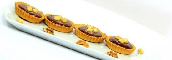 - قدمى التارت مع الصوص وزينى بحبات البندق وعين الجمل .