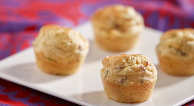 ينقل الخليط بالملعقة إلى صينيتي الميني مافن المدهونين.