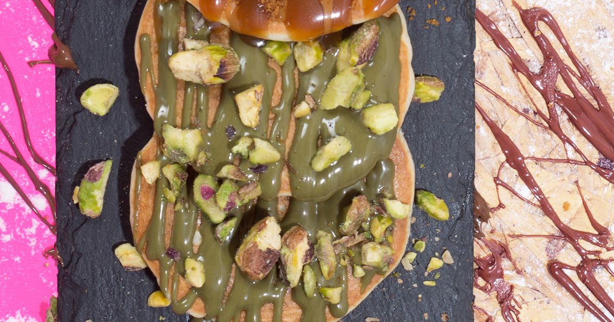 1- في وعاء، ضعي الفستق الحلبي، كريمة الخفق والحليب المكثف المحلّى. أخلطي المزيج حتى يتجانس. 2- في وعاء، ضعي الحليب، الملح، البيض، الفستق الحلبي، الزبدة، الدقيق، السكر والبايكنغ باودر. أخلطي المزيج حتى يتجانس. 3- أسكبي كميات صغيرة من العجين دخل مقلاة غير لاصقة على نار متوسطة. عندما تظهر الفقاعات على الوجه، أقلبي البان كيك على الجهة الثانية واطهيها حتى تصبح ذهبية اللون. 4- ضعي الميني بان كيك في طبق التقديم وزيّني بصلصة الفستق. ألف صحة!