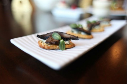 - لتجهيز النقارش :نصف رقائق البسكويت في طبق ونضيف فوقها شريحة من الجبن تناسب حجم قطعة البسكويت وعليها نضيف قطع الفطر السوتيهاخيرا نزين بالاعشاب الخضراء