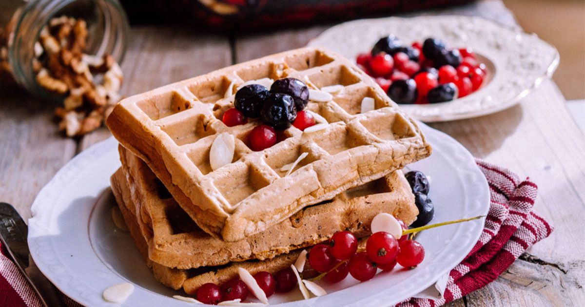 3- سخّني ماكينة الوافل واسكبي داخلها القليل من العجينة. أطهي الوافل حتى يصبح ذهبي اللون.