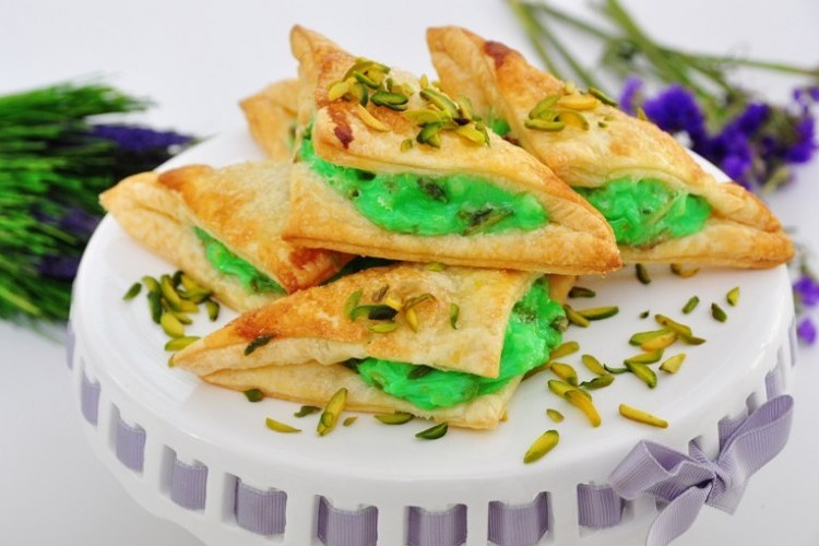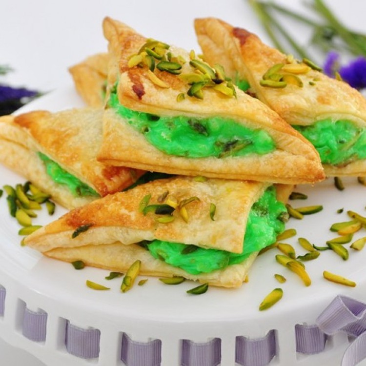 * إذا لم تتوفّر مربعات “الباف بايستري”، استعملي العجينة الكبيرة، ومديها بالنشابة لتصبح بسماكة 4 ملليمترات، من ثم قطعيها إلى مربعات.