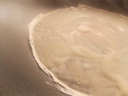 - في إناء يتم وضع الدقيق والملح ثم إضافة الماء حتى الحصول على مزيج سائل .