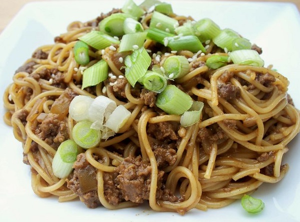 اندومي باللحم المفروم طبق شهي للغاية ومغذي عبارة عن نودلز مع لحمة مفرومة مطبوخة بصوص مميز من الصويا وصلصة حارة وكاتشب وغير ذلك من المكونات اللذيذة .