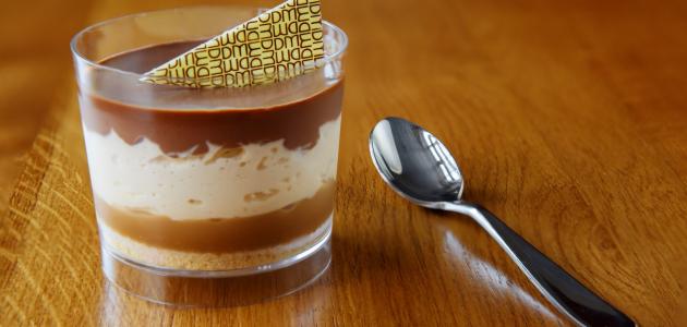 - نضع مقدار ثلاث ملاعق صغيرة من البسكويت في أسفل الكأس، ثمّ نضيف مقدار ملعقتين كبيرتين من مزيج الكريمة والجبنة كطبقة ثانية.
