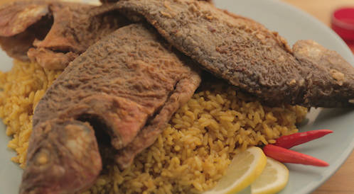 - السمك المقلي مع الأرز المبهر، وصفة عالية الدهن كونها مقلية وعالية بالسعرات الحرارية.