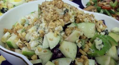 • سلطة الكرنب بالتفاح سلطة غنية بمضادات الاكسدة والفيتامينات والمعادن الضرورية بالاضافة الى البروتينات والاوميغا 3 الممتدة من زيت الزيتون والجوز.