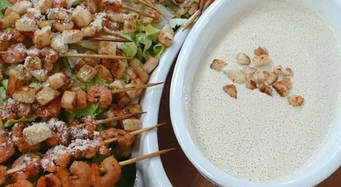 المقادير لتحضير سلطة سيزر مع الروبيان