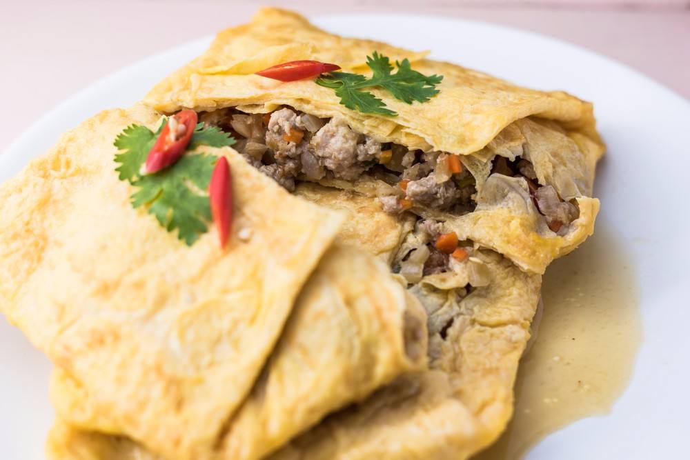 - توضع اللحمة في منتصف البيض، وتطبق عليها أطراف البيض.