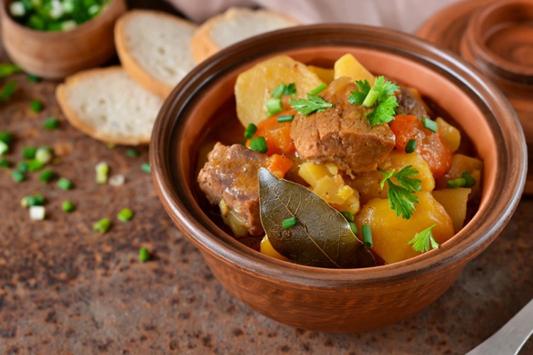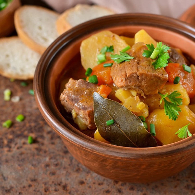 4. أضيفي لقدر اللحم البطاطس والجزر والكرفس واتركي المزيج لمدة 45 دقيقة إضافية حتى تنضج الخضار.