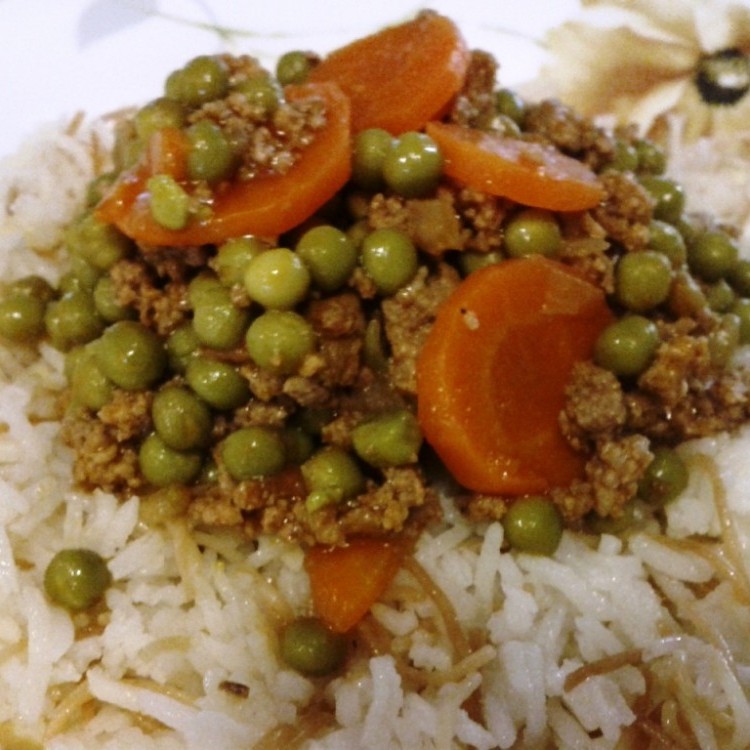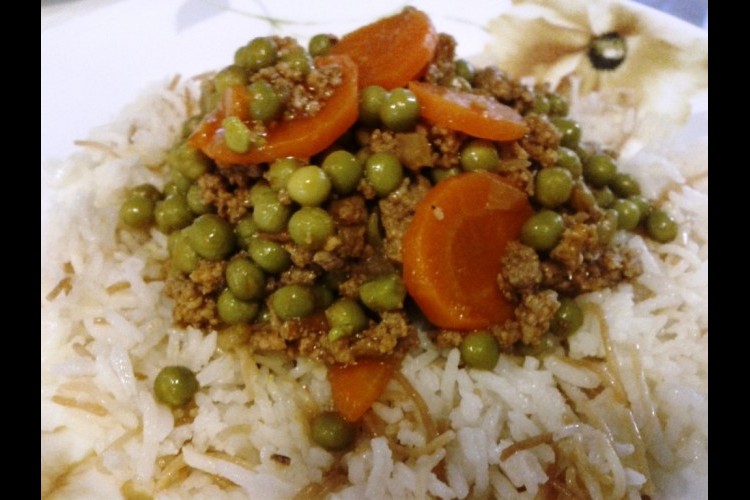 5. قدمي يخني البازيلا والجزر باللحم مع الأرز الأبيض المفلفل.