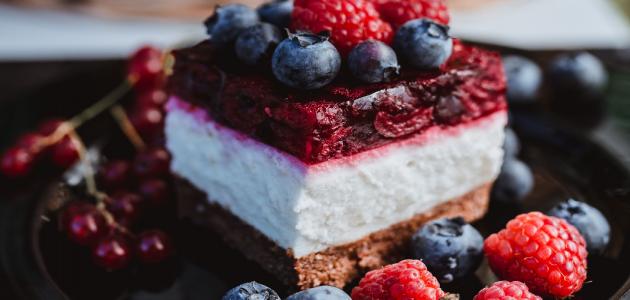 - صب خليط التشيز كيك فوق قاعدة البسكوت وخبز التشيز كيك بالفرن على درجة حرارة 180 درجة مئوية لمدة من خمس وثلاثين دقيقة إلى أربعين دقيقة، ثمّ إخراج القالب من الفرن وتركه إلى أن يبرد ثمّ وضع التشيز كيك بالثلاجة لمدة ساعة إلى أن يبرد جيداً، ثمّ تزيينه بالتوت المشكل والسكر البودرة.
