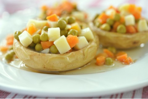 - 2x حبة بطاطس مغسولة ومقشرة ومقطعة مكعبات صغيرة